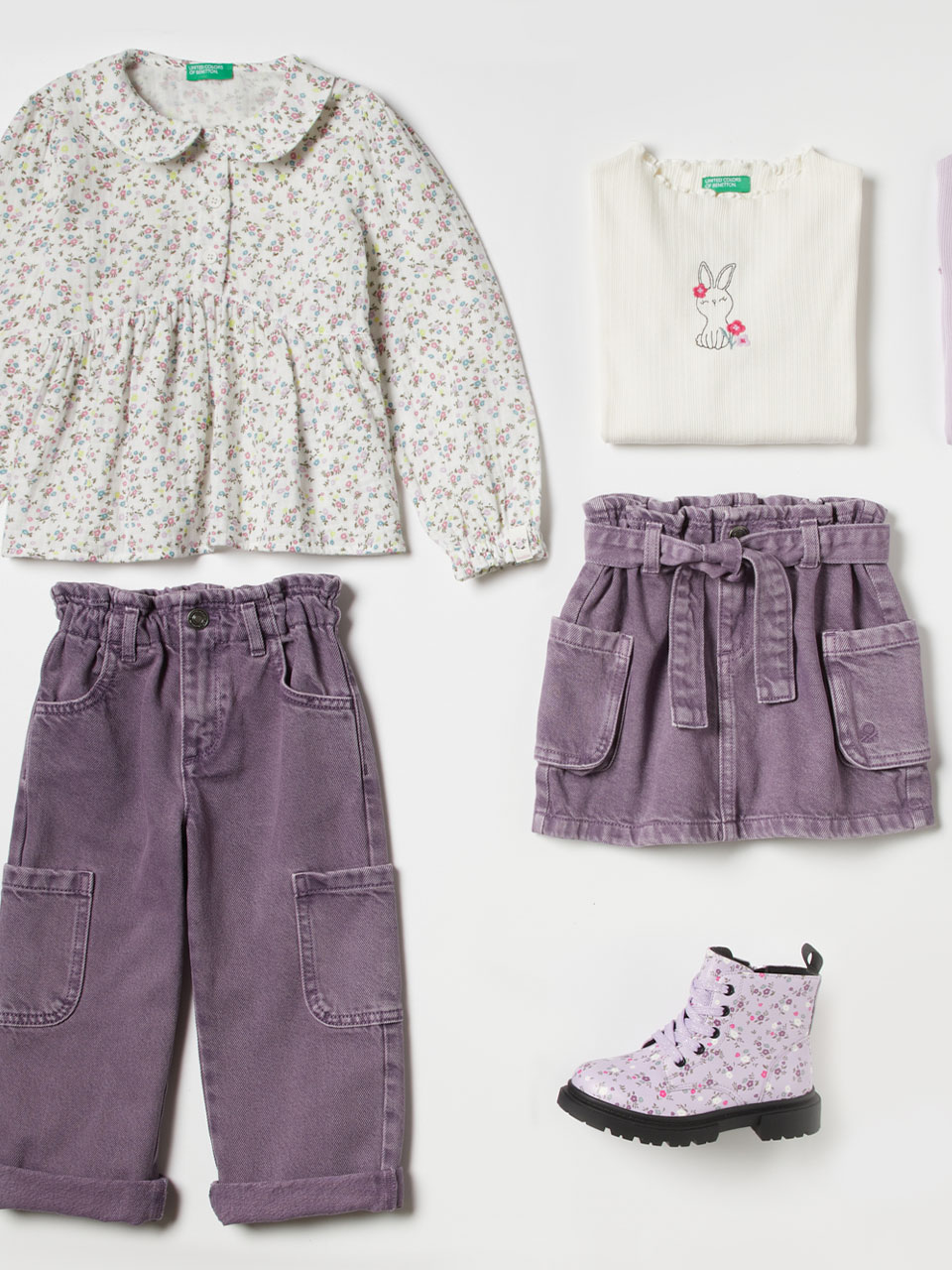 Bright colors, fun prints and a playful style: discover the new looks from the kids' collection dedicated to their favourite characters.